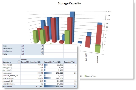 • В отчет включаются: сетевая конфигурация, виртуальные хранилища (конфигурация + емкость), информация по VMotion, конфигурации объектов (ВМ, хосты, пулы и т.п.), составляющие VI – Inventory, Raw Data – свой набор параметров для выгрузки в Excel.