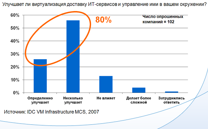 Где и в каких масштабах используется сейчас виртуализация - вопрос неуместный, поскольку используется она везде и на всю катушку. А вот довольны ли виртуализацией компании? На это ответит следующая картинка:
