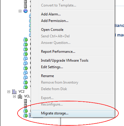 • Далее в контекстном меню для виртуальной машины у нас появляется пункт «Migrate Storage»: