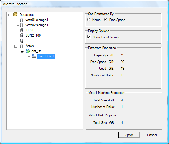 Теперь же, с помощью SVMotion plug-in можно прямо из VI Client в GUI производить горячую миграцию хранилищ виртуальных машин между томами VMFS. Как начать им пользоваться: