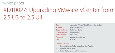 Для тех, кто еще не планирует обновление на VMware vSphere 4, но продолжает жизнь в линейке VMware Virtual Infrastructure 3.5, компания Xtravirt выпустила руководство по апгрейду VMware vCenter (VirtualCenter) 2.5 Update 3 на Update 4.