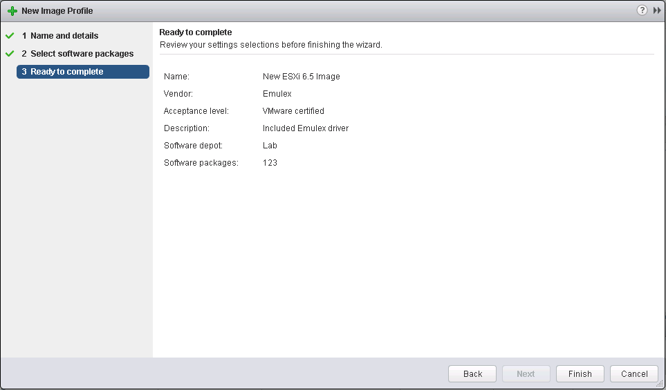 Таким образом мы создали новый Image Profile с кастомным драйвером Emulex. Вот он: