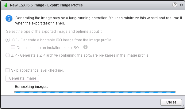 Как образ сгенерируется - его можно скачать и уже записывать на диск или флэшку, чтобы устанавливать кастомный ESXi.