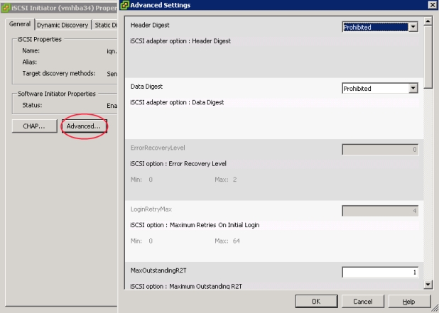 В VMware vSphere 4 появились расширенные настройки инициатора iSCSI на хостах ESX / ESXi для более тонкой настройки к системе хранения по IP-протоколу. Настройки, приведенные ниже, не рекомендуется изменять самостоятельно, без участия Support Team компании VMware.