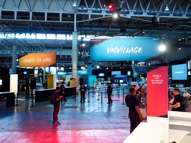 В этот раз основной холл конгресс-центра представлял собой многофункциональную зону с огромной вывеской VMvillage.